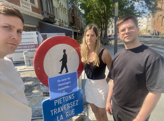 Jong N-VA 1302 heeft vandaag op ludieke wijze gereageerd op een onwettig Franstalig verkeersbord dat recentelijk op de Grote Markt in Kortrijk verscheen. Het bord met de tekst "piétons traversez la rue" werd aangevuld met een Nederlandstalige boodschap die luidde: "En voor de Vlamingen hetzelfde...". Met deze actie benadrukt Jong N-VA 1302 dat het respect voor de taalwetgeving essentieel is.