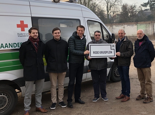 In 2020 bestaat de afdeling van Rode Kruis in Kortrijk 150 jaar en dat laat schepen Axel Ronse niet onopgemerkt voorbijgaan. In dit feestjaar beslist de stad om de nieuwe verkaveling tussen de Vlaanderenkaai en Minister Lybaertlaan de naam ‘Rode Kruisplein’ te geven.